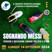 Il Gs Duomo ha il piacere di invitare tutti i genitori e i dirigenti al secondo appuntamento con l’aperi-workshop “Sognando Messi” parte #2 con il Dott. Paolo Scorzoni, insegnante e formatore della Scuola Calcio Duomo.