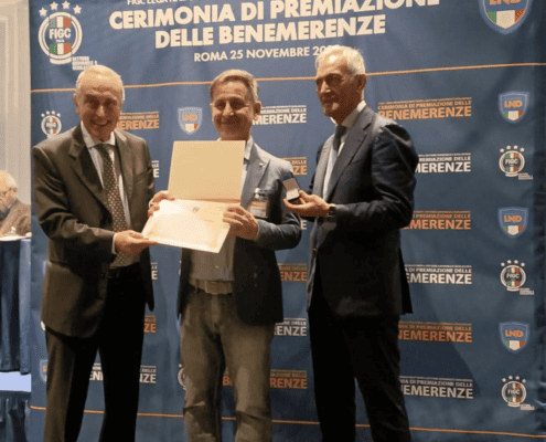 Cerimonia 2023 delle Benemerenze, il presidente Enrico Chiarion premiato a Roma dalla Figc